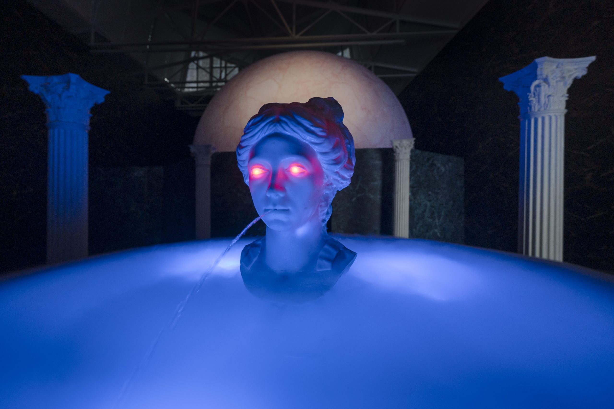 For the Swiss Pavilion project, “Super Superior Civilizations”, artist Guerreiro do Divino Amor and curator Andrea Bellini worked together with executive producer Larisa Oancea, director assistant Diego Paulino, musical director Beà Ayoolà, scenography producer Giovanna Bellini, technical director Pedro Zaz, mechatronics director Klau’s Kellermann, sculptress Lyz Parayzo and costume designer Andy Roba, among many others. The cast includes Ventura Profana (the she-wolf), Adriana Carvalho (the eagle) and Amanda Seraphico (the ewe lamb).